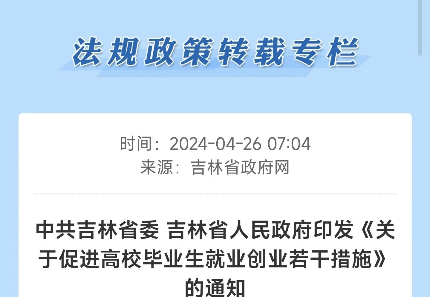 【转发】中共吉林省委 吉林省人民政府印发《关于促进高校毕业生就业创业若干措施》的通知