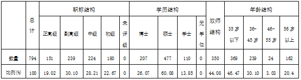 学校现有专任教师 794 人,生师比为 16.96:1。