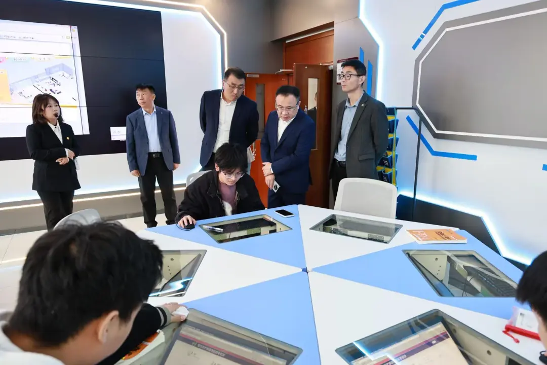 赵爽一行在校领导陪同下,参观了虚拟仿真实训中心、智慧校园指挥中心等场所,并实地考察了学校在数字化建设和实践教学方面的成果。