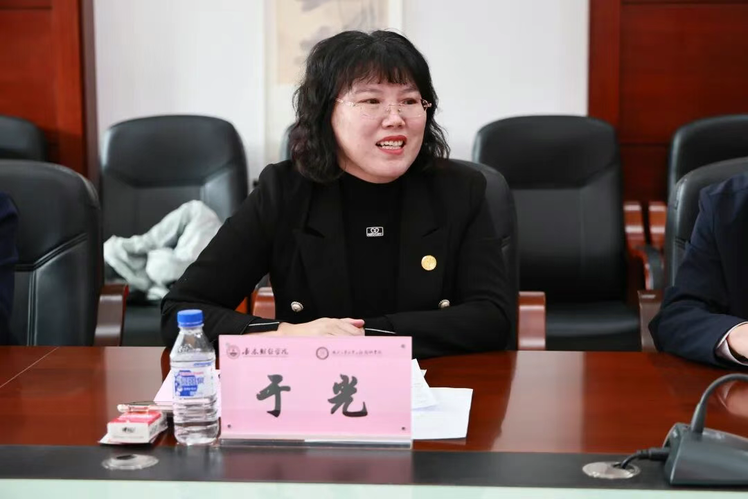 我校经济学院院长于光系统介绍了学院在学科建设、教学科研与实践融合等方面的举措,重点阐述了数字经济专业的建设思路与发展规划。她表示,学院积极推进数字经济与多学科交叉融合,着力构建产学研协同育人机制,培养适应数字化转型的应用型人才。