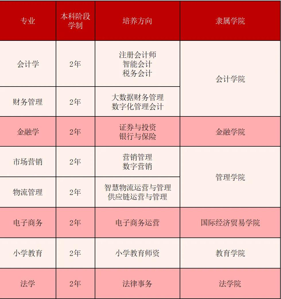 本科,管理学学士学位,学制二年