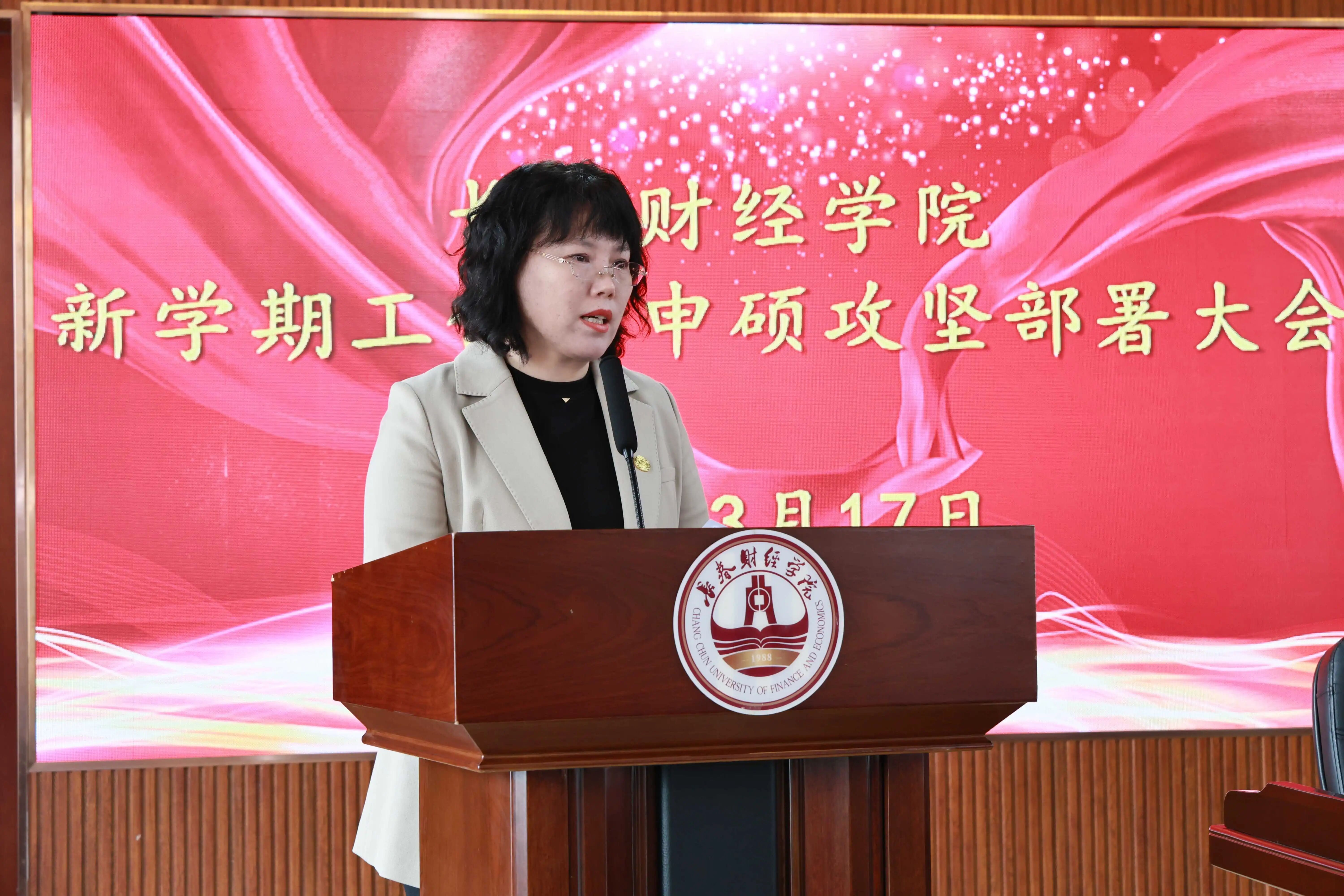 会计学院、经济学院、人工智能学院、教务处、科研处、人事处等学院和职能部门负责人,聚焦“深耕、赋能、改革、创新、提质”等关键词,围绕学校“申硕攻坚年”核心目标任务,依次发言。他们立足当下谋长远、聚焦问题出实招,既有思想认识的深度,又有工作目标的精度,更具落地举措的力度,以时不我待的紧迫感、攻坚克难的责任感,为实现“申硕攻坚年”的目标任务注入了坚实底气、强劲动力、有力支撑。