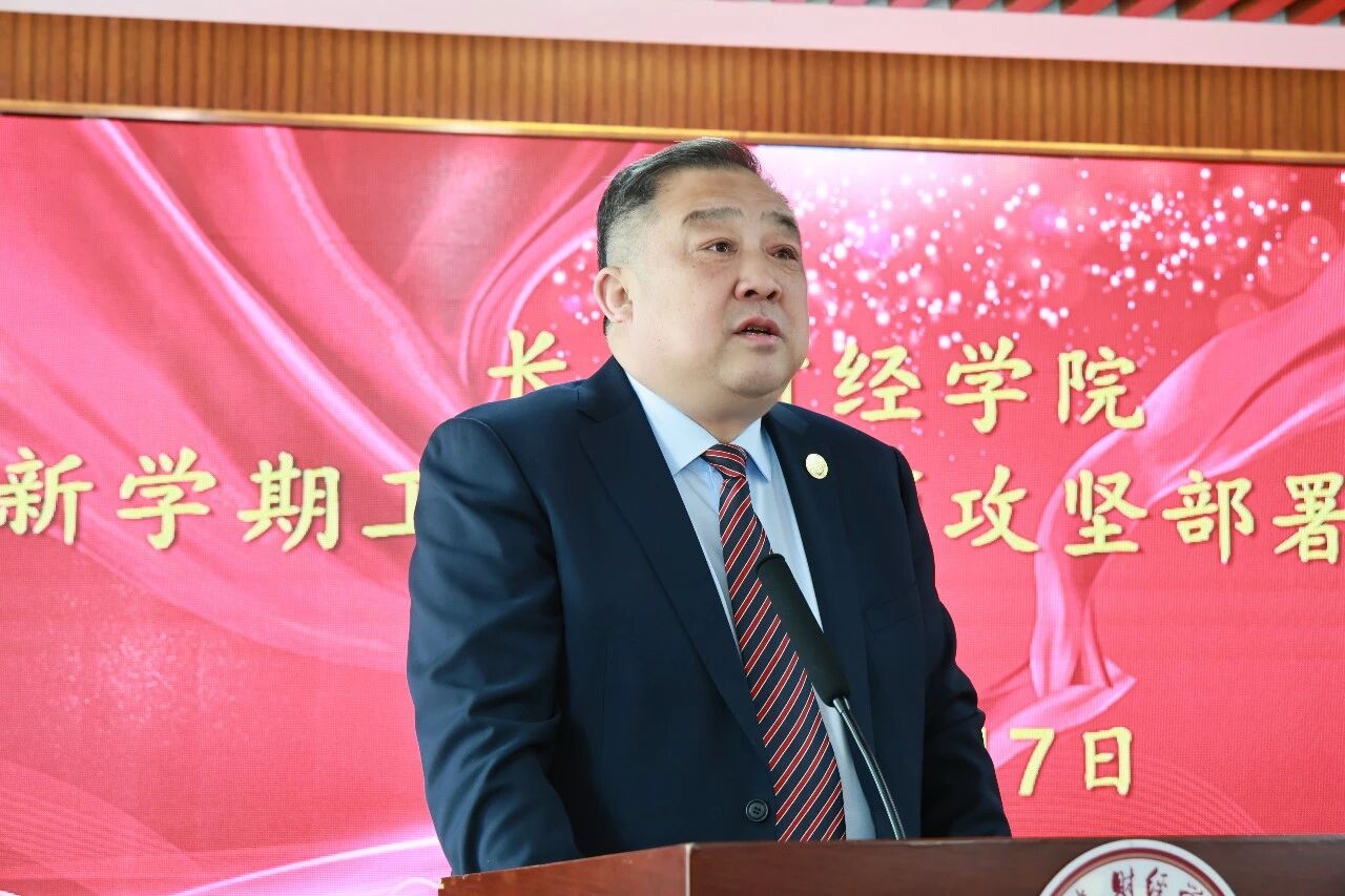 他号召,全校师生员工在学校董事会和党政班子带领下,以舍我其谁的担当、攻坚克难的勇气、久久为功的韧劲,统筹做好教学、科研、管理、服务等各项工作,人人争做学校发展的创业者、建设者和奋斗者,踔厉奋发,笃行不怠,全力冲刺申硕目标,努力实现新的突破、创造新的业绩,为学校“十五五”精彩开篇奠定最坚实的基础,共同谱写长财高质量发展的壮丽篇章!