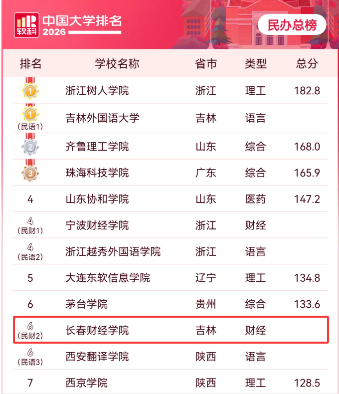 长春财经学院凭借卓越的办学实力荣登