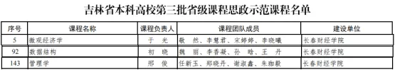 近日,吉林省教育厅下发了《关于公布吉林省本科高校第三批省级课程思政示范课程名单的通知》,我校于光教授的《微观经济学》、初晓教授的《数据结构》以及邢俊教授的《管理学》3门课程获批第三批省级课程思政示范课程。至此,我校省级课程思政示范课程总数已达7门,位于吉林省民办高校前列。