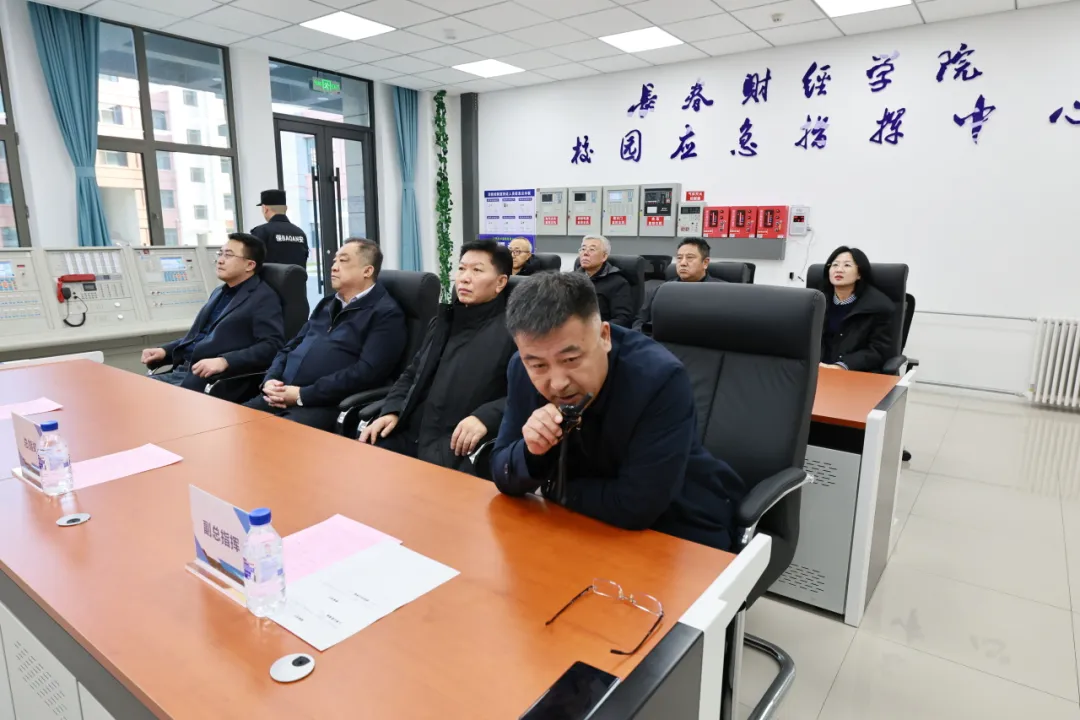 董事长李树峰、党委书记郭立东以及党政领导班子成员在校园应急指挥中心指挥调度、观摩调研。