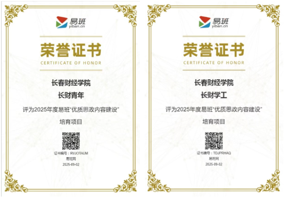 网络思政阵地建设卓有成效。“长财青年”微信公众号获评全国高校思政类公众号重点建设单位、全国高校共青团新媒体重点工作室;“长财学工”公众号与“长财青年”共同荣获2025年度全国易班“优质思政内容建设”培育项目。获批中国青年网校园通讯社通讯站,构建起线上思政育人新高地。积极融入区域美育与国防教育发展格局,成为首批吉林省青少年艺术协会高校美育委员会成员单位,加入吉林省高等教育学会国防教育专业委员会,借力高端平台资源,持续提升学校育人工作的社会影响力与美誉度。