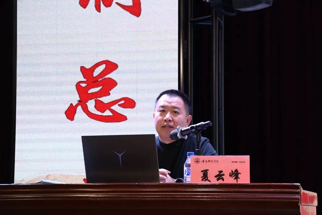 开班仪式结束后,马克思主义学院党史教研室主任杨万贺做了“提升党性修养 坚定信仰信念—在党史中领悟共产党人的初心和使命”专题报告;校团委书记夏云峰做了“党的指导思想、党的性质、宗旨和纲领”专题报告。